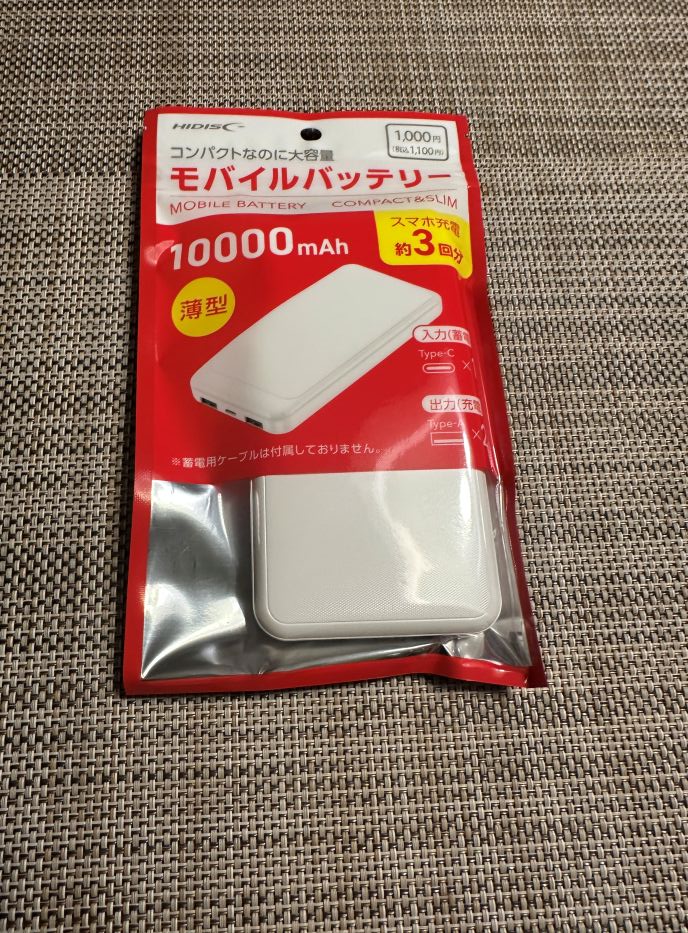 100均だからバッテリーも100円! ではなく1000円とダイソーではとっても高価な値段付けですが、世の中の同様の商品と比べて1000円で買える 10000mAh のモバイルバッテリー! これ以上なほどに安いですよね、驚愕のコスパ といいってもよいでしょう。 耐久力は心配なので、引き続き私が日常的に使用していきますね