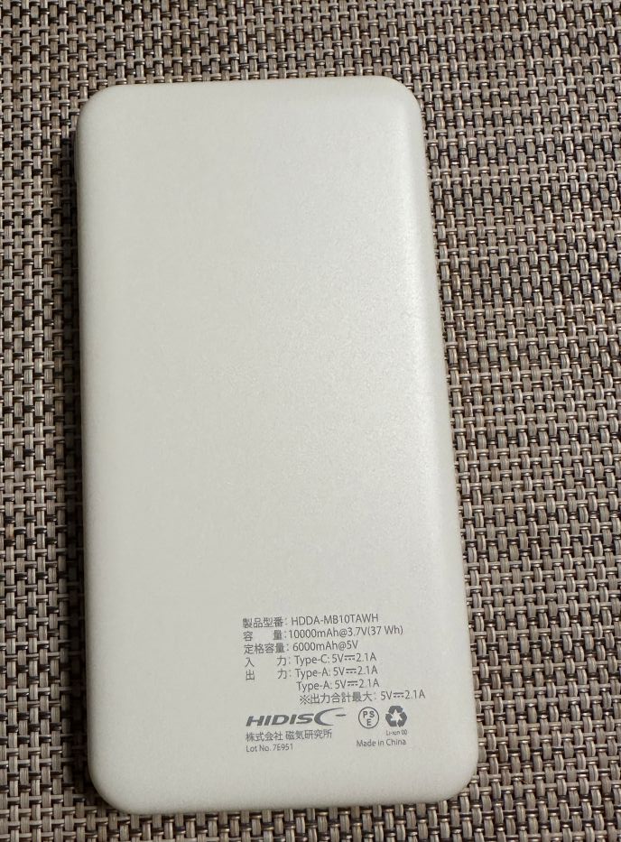 今しばらくお待ちください。 PoweBank の形状もダイソー 10000MAh 同様にスリムで使いやすそうな感じです、