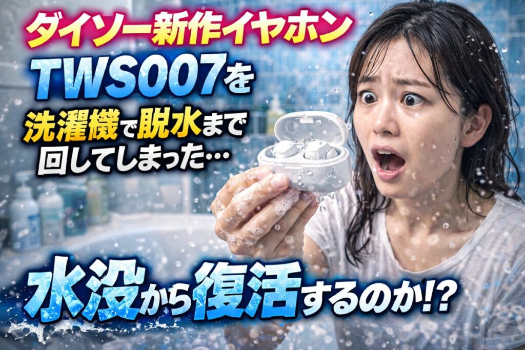 本記事では、ダイソー新作TWS007を洗濯機で脱水まで回してしまった実体験をもとに、水没直後の状態から3日間の乾燥経過、そして復活の可能性について記録します。