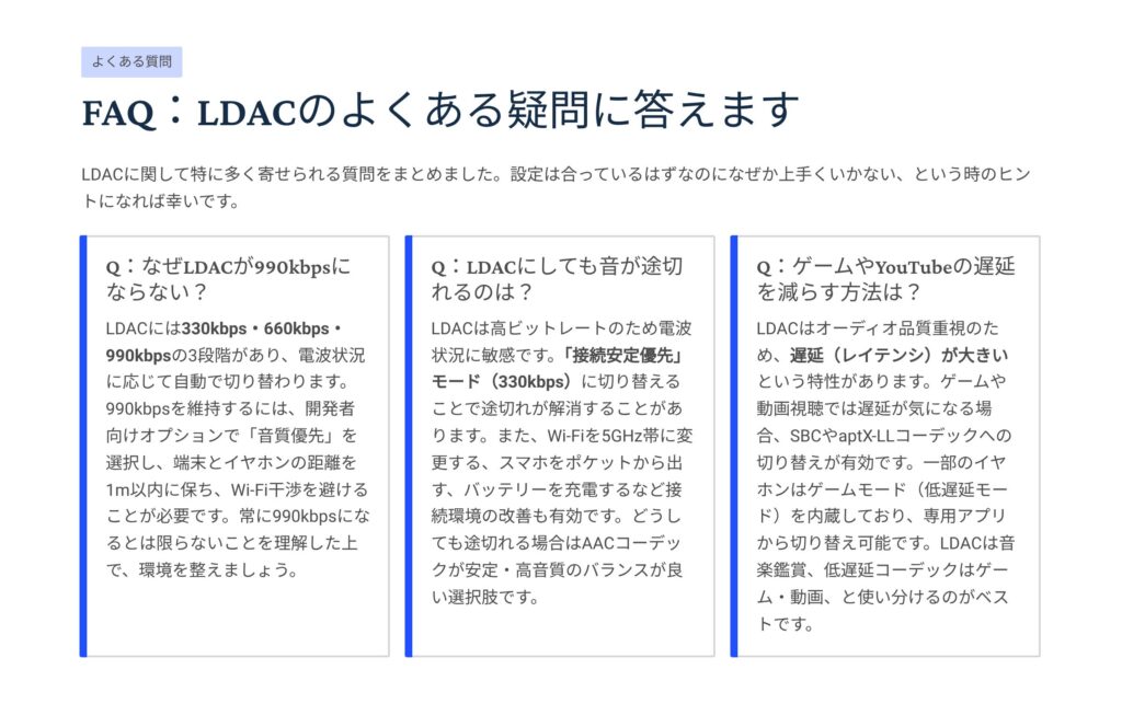 LDACは“環境にシビア”ですが、距離・干渉・電池の3点を整えるだけで安定度が大きく変わります。